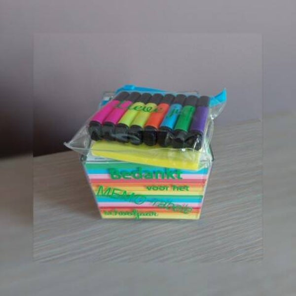 Memoblokhouder met tekst. Tekst kan aangepast worden met je eigen tekst.