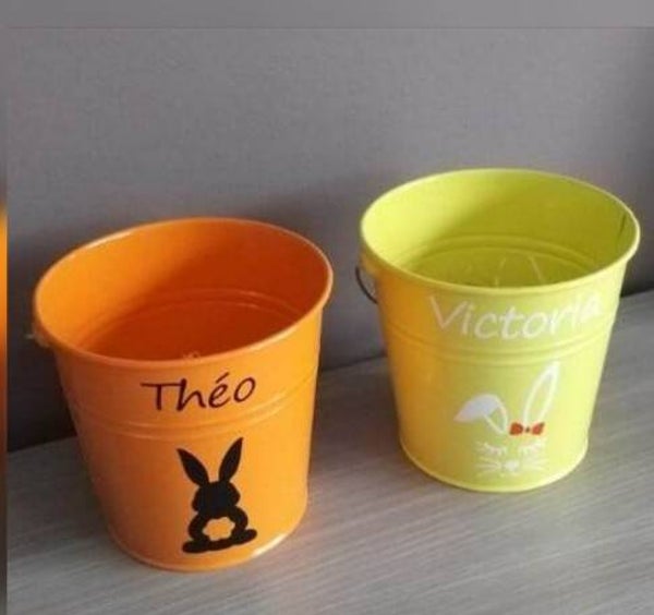 Emmertje met metalen handvat, gepersonaliseerd met paasprint en naam. (niet gevuld)